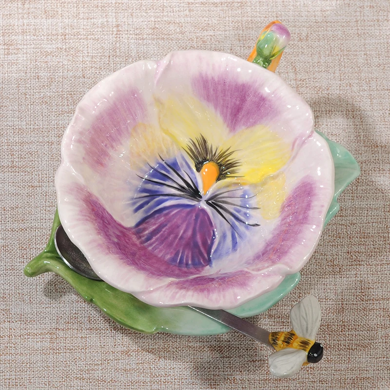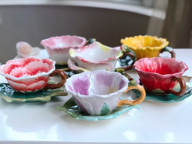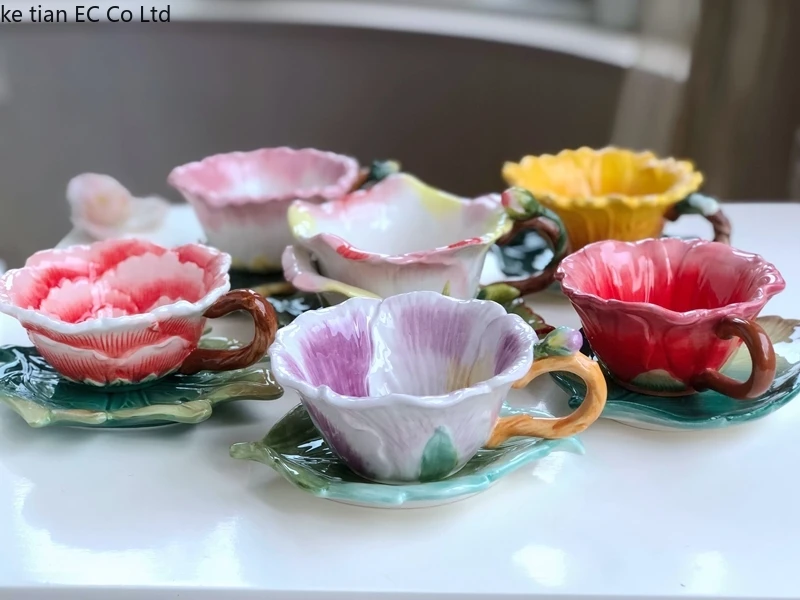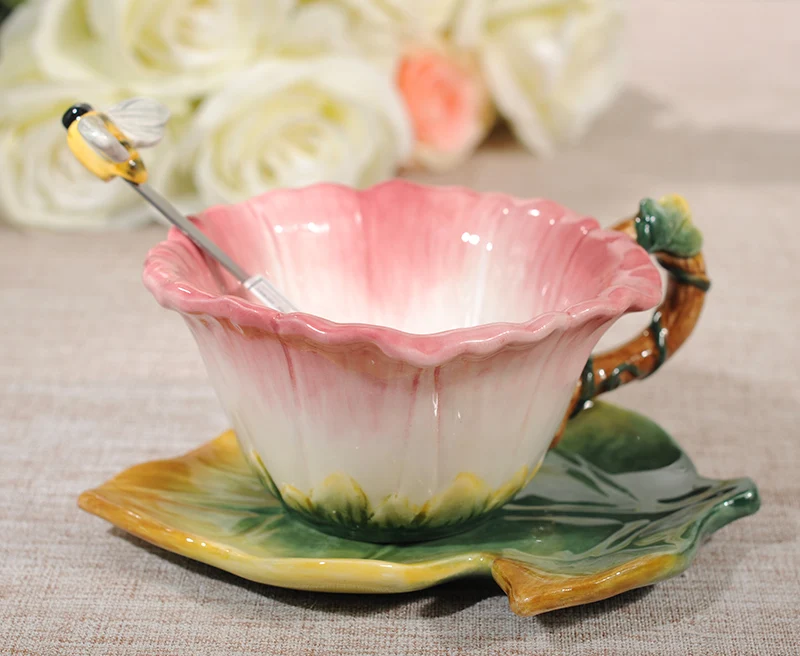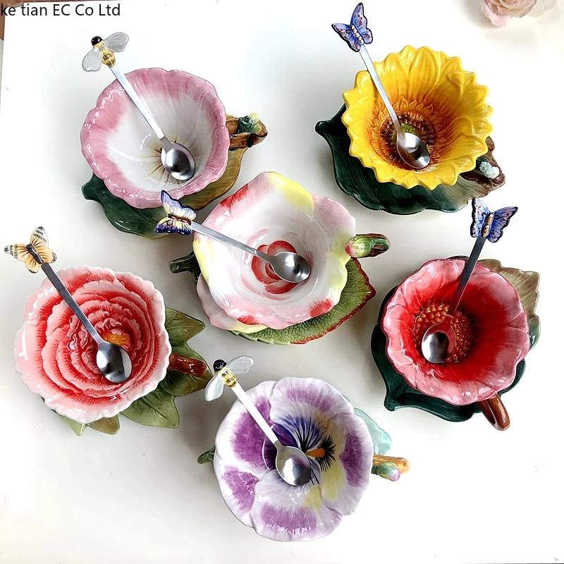 كوب قهوة على شكل زهرة وصحون + ملعقة قهوة متطابقة