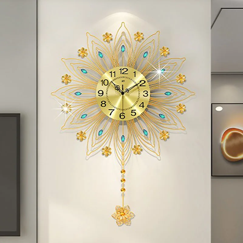 النمط الأوروبي ساعة حائط التصميم الحديث غرفة المعيشة الكبيرة الطاووس ساعة معلقة ساعة الحائط الراقية ديكور المنزل الساعات هدية
